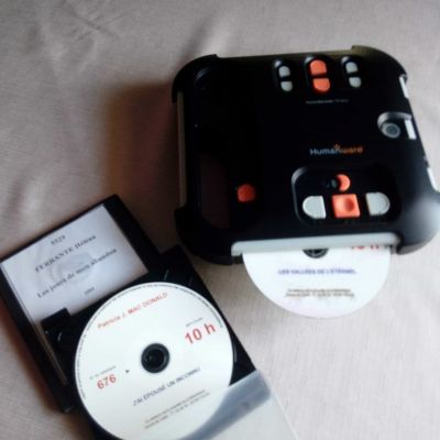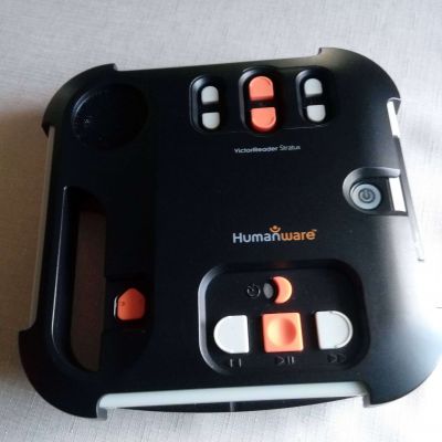 Ce lecteur appelé "Victor Reader" prend en charge la lecture des CD ou des clés USB contenant le livre audio. Très simple d'utilisation, il est muni d'un haut parleur, mais peut aussi être utilisé à l'aide d'un casque audio. La Bibliothèque Sonore prête gratuitement cet appareil de lecture aux adhérents déficients visuels qui souhaient en bénéficier.